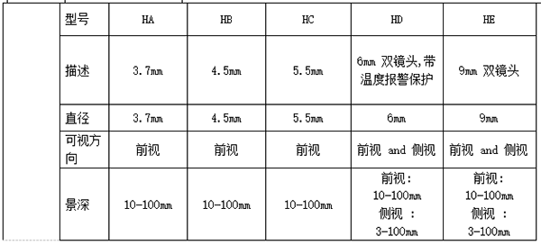 此外,该款产品有直径3.7mm、4.5mm、5.5mm三种直视镜头,直径6mm、9mm两种双镜头,让您可以按需选择,一机多管,以最优的价格获得最佳的搭配组合,以适应多种工况环境。
