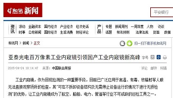 和讯网:亚泰光电工业内窥镜引领国产工业新高峰