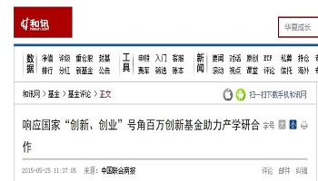 和讯网:响应国家“创新、创业”号角百万创新基金助力产学研合作