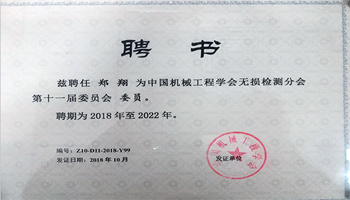亚泰光电郑总当选中国机械工程学会无损检测分会第十一届委员会委员