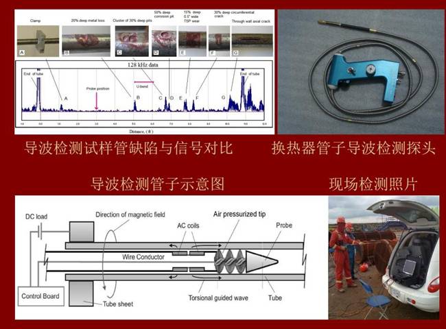用于换热器管束检测的导波技术基于超声导波特性将探头置于换热器管端激发超声导波,具有检测速度快,检测距  离长,较高灵敏度等特点