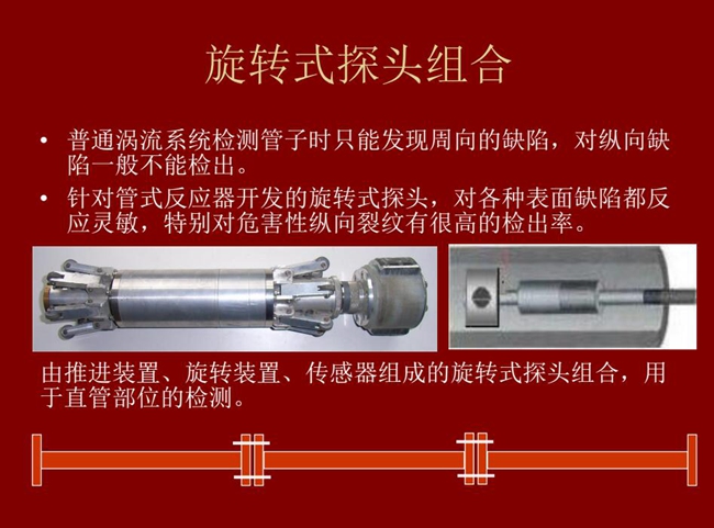 管式反应器检测系统包括涡流检测设备和内窥镜检测设备,内窥镜探头可以从正视与侧视两个方向对管子内壁进行视频检查