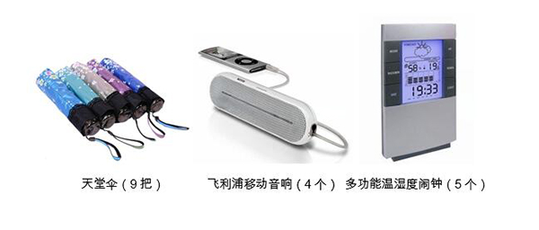最后,让我们对销售二部的同事表示热烈的祝贺,公司已挑选出以下精美礼品作为奖励。每一位员工的辛勤付出,都将会得到回报