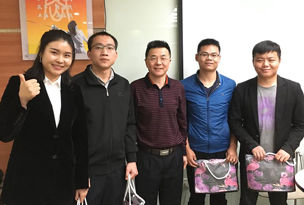 最佳团队颁奖(左1夏双、左2刘治华、中间郑总、右2刘成君、右1徐康)