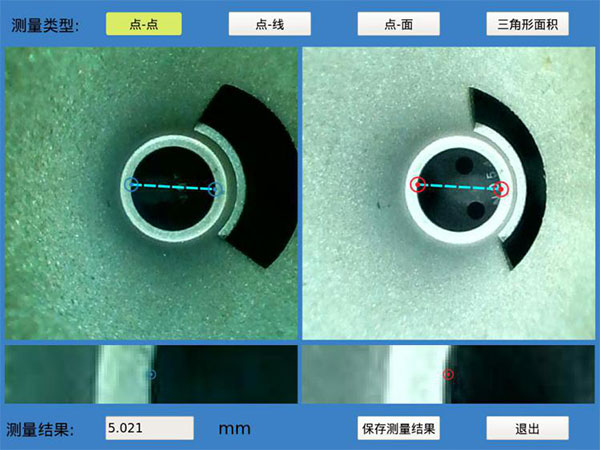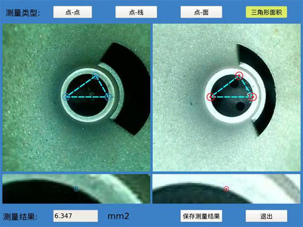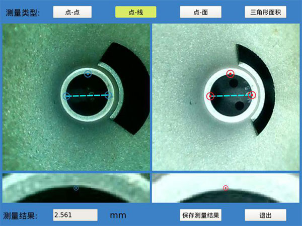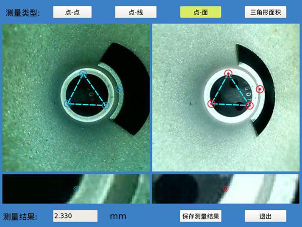 三维测量系统,可通过点到点,点到线、点到面、面积测量等方式精准测量缺陷的尺寸。