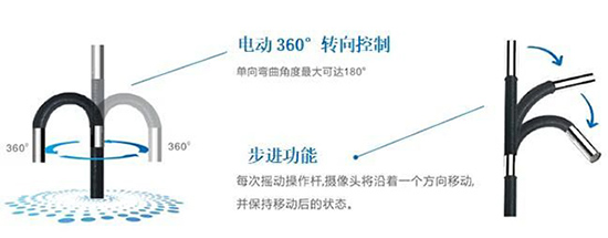 (1)自动锁定、精准定位:探头在任意弯曲状态下,只需保持3秒,即可自动锁定;锁定后开启微调功能,再操作摇杆时探头将以锁定的轴心进行小幅度转动;