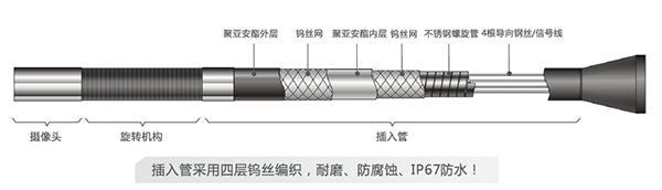 (1)插入管采用四层钨丝编织,耐磨、防腐蚀、IP67防护等级;