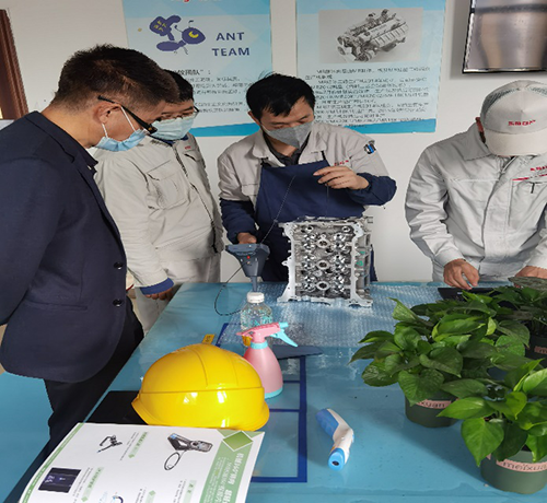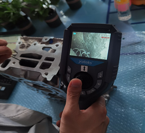 客户主要用于检查汽车发动机水泡情况,每台发动机缸盖都要检查,一天检查200多台(分白夜班),一台10多次,按缸盖上面的纹路形状来回拖动检测。客户之前买过别家定型管的内窥镜,用了没多久就坏了,而且操作起来不方便,客户看过亚泰光电2.8mm工业内窥镜,这次想看一下亚泰更细的内窥镜,实测过程中,用2.2mm的内窥镜检测缸盖内部时还有多余空间,能明显看清内部拐弯处情况,还在一处发现内部有铸造铁屑,甲方相关设备管理维护人员对我们的内窥镜效果比较满意,双方己确定后续深入合作计划。