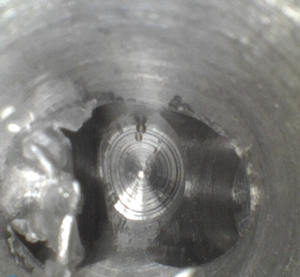 在接触亚泰工业内窥镜产品之前,客户己有购买国内某内窥镜品牌工业内窥镜产品,现在客户主要考虑的是在不降低检测效果的情况下降低使用成本,同时看看亚泰内窥镜设备的实测效果,经过前期双方初步沟通对接后,亚泰内窥镜销售工程师按约定时间到达客户方演示现场,本次演示的工业内窥镜机型主要是HDMIE310PA5、HDMIE210PM、GIE2.2mm直视、2.8mm直视、3.0侧视等型号内窥镜,为了检测设备水环境下的试用性,下午客户特意拿新购的高压水枪冲刷铝机加工件后,再次用亚泰工业内窥镜进行验证检测。车间平时一天测500-600个料,一个班10多个人常年都要用设备检查,检测完用油管连接验证,现场实测时,用亚泰直径2.8mm测4mm小孔,由于内窥镜模组靠内壁太近,检测效果一般,销售工程师后换作用直径2.2mm内窥镜设备检测,客户方现场负责人看完演示后立马表示亚泰内窥镜设备效果确实很不错,非常清晰,当时,客户就现场拿手机录制检测效果视频和图像并上报给其上一级领导。