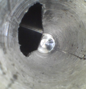 客户地处华南区,主营手机、电池、电脑配件等相关配套部件,客户方用内窥镜检测的是其生产的铝合金机加工件,用于手机后盖压模用,客户生产手机后盖时,会用到磨具,他们内部称铝合金机加工件,上面交错孔大小不一,主要用内窥镜看内部的破孔处毛刺等情况。