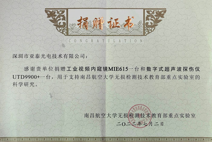 真情捐赠仪器,助力院校发展——深圳亚泰光电向南昌航空大学捐赠两台无损检测设备