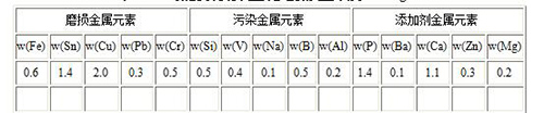 8月,南方某电厂2号燃机由于振动值偏高,对油箱底部滑油进行了光谱分析,具体数据如表1。