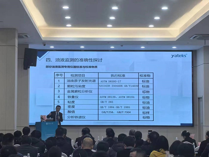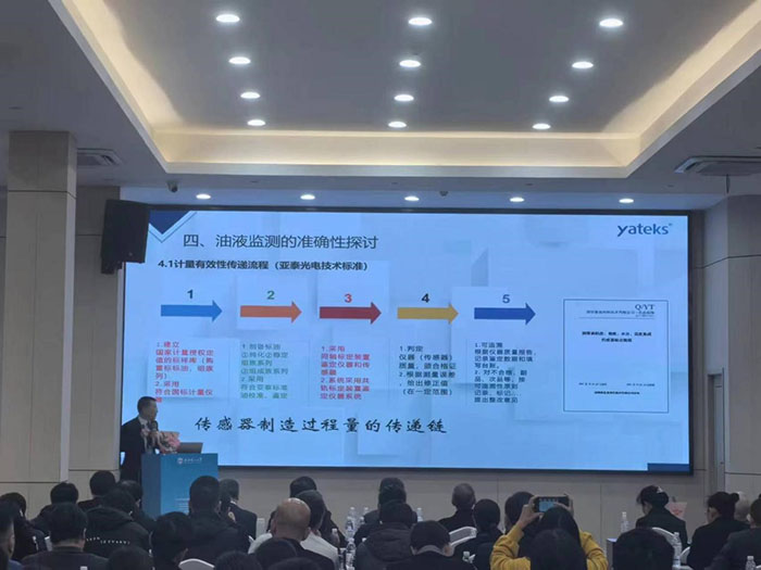 此次会议通过专题报告,如油液传感器应用实践、油品分析仪研发、油液监测大数据、设备润滑等不同领域维度和技术交流以及参观学习的形式举行,深圳市亚泰光电技术有限公司郑总在会上做了油液监测的准确性探讨的专题报告,报告从金属磨粒分析仪、原子发射光谱、颗粒污染度等部分油液监测专用仪器标准与校准物质;油液传感器计量有效性传递流程等维度做了阐述。