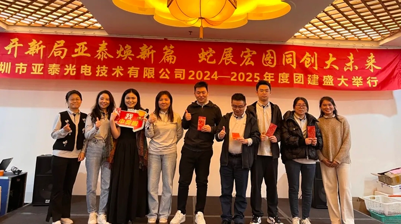 12月13日,深圳亚泰光电迎来了公司2024—2025年度的团建盛典。在这个充满希望与挑战的新起点上,全体员工齐聚一堂,以“龙开新局,亚泰焕新篇;蛇展宏图,同创大未来”为主题,共同开启了一段难忘的旅程。会场内洋溢着对过去一年成就的自豪和对未来发展的期待,每一个微笑背后都蕴含着对公司未来的坚定信心。
