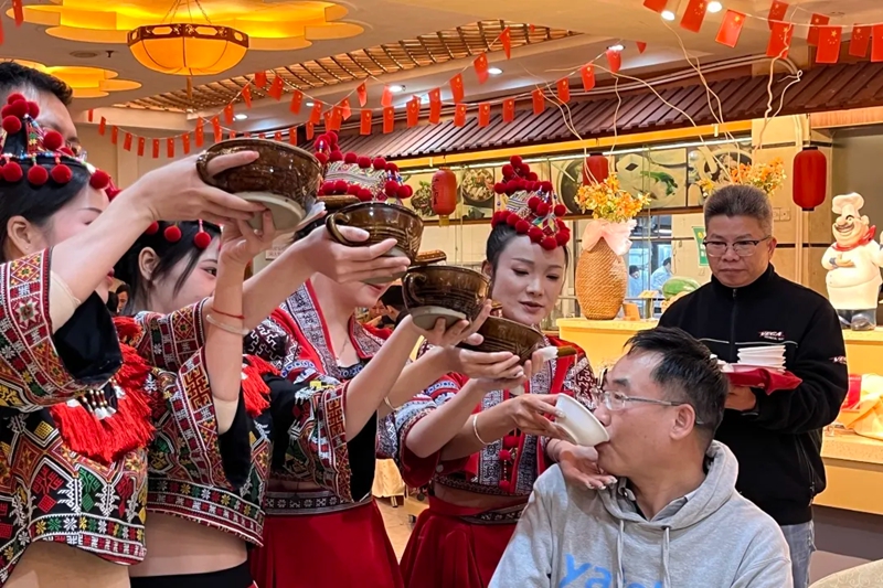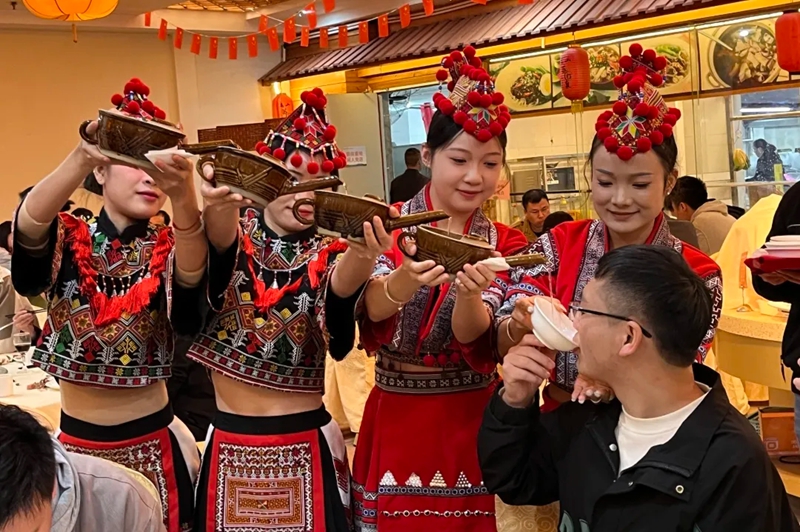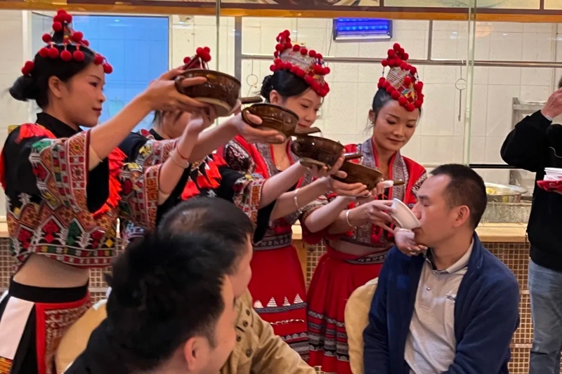 晚宴期间,一场令人叹为观止的国粹变脸表演将气氛推向了高潮。艺术家们以迅雷不及掩耳之势变换着脸谱,每一次转变都赢得了台下观众热烈的掌声和惊叹声。这一中国传统艺术形式的独特魅力,在这一刻展现得淋漓尽致,不仅给在场的每一个人带来了视觉上的震撼,更让大家深刻感受到了中华文化的博大精深。
