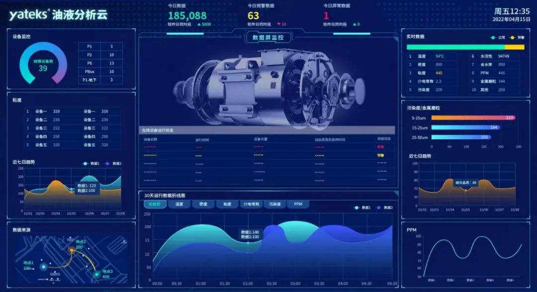 系统可7×24小时不间断监测油液粘度、水分含量、介电常数、磨损等关键参数。一旦检测到异常趋势,立即发出警报,使运维人员能够在故障发生前安排维护,变被动维修为主动预测,避免灾难性故障。