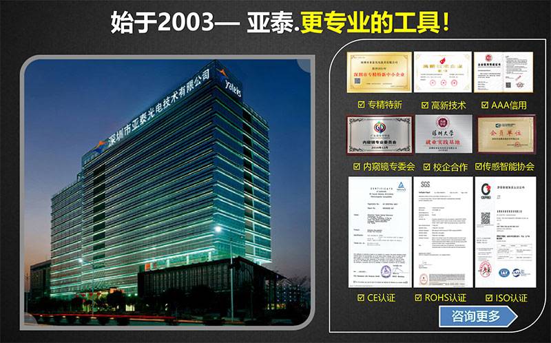 亚泰光电,国家高新技术企业和深圳知名品牌,10余年工业内窥镜油品分析仪研发、生产行业经验,国内外知名企业合作供应商,产品优惠热线:13316911816(微信同号) 0755-86656096 0755-86656390 联系我们获取更多优惠详情,期待您的指导与交流!